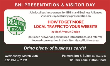 Join local business owners for an energetic networking event and a practical presentation on how to get more local traffic to your website. During this Visitor’s Day meeting of BNI Island Business Alliances, you’ll connect with growth-minded professionals and learn specific ways to make your business easier to find online.